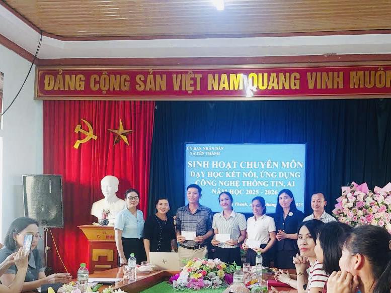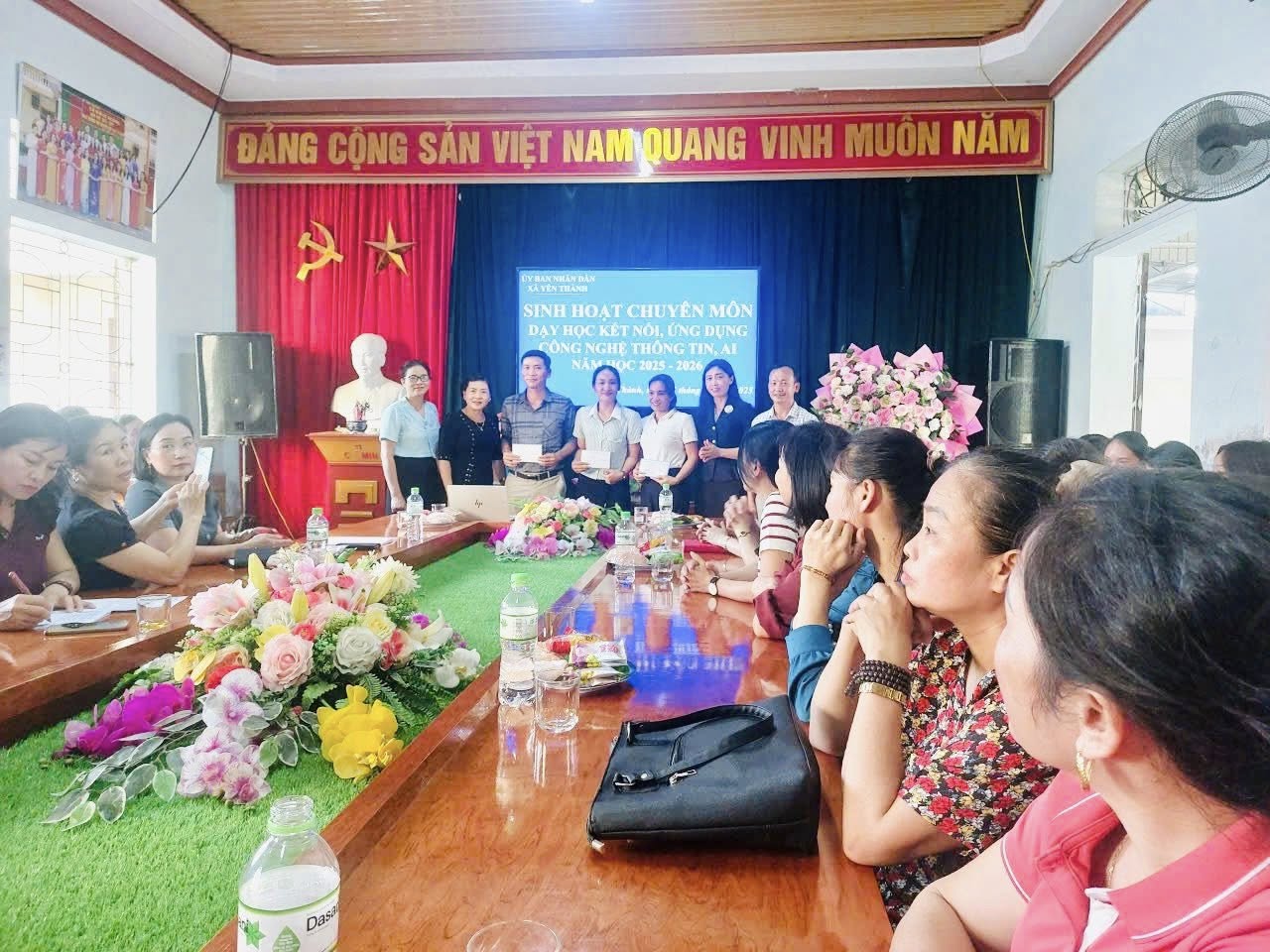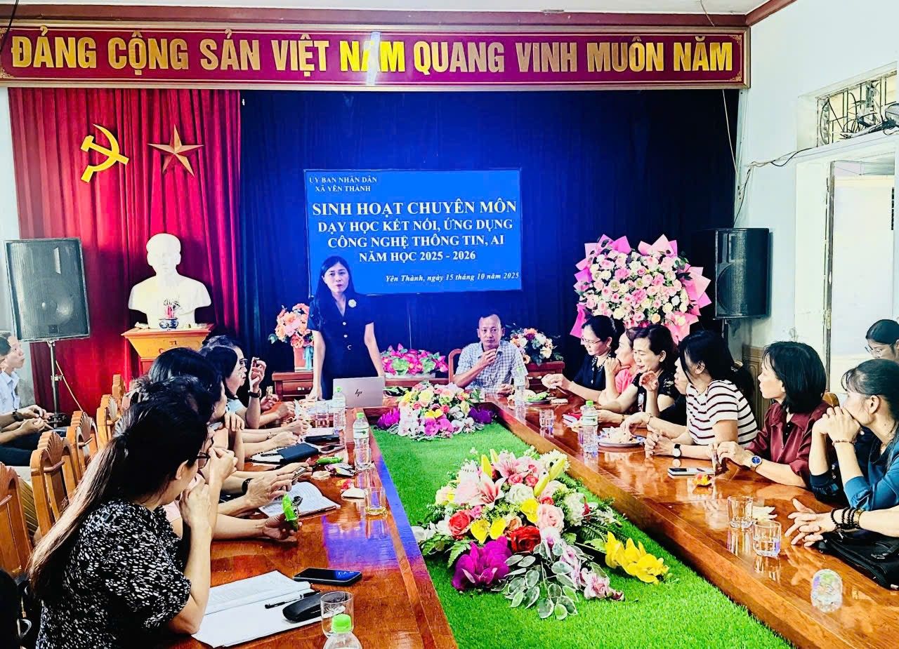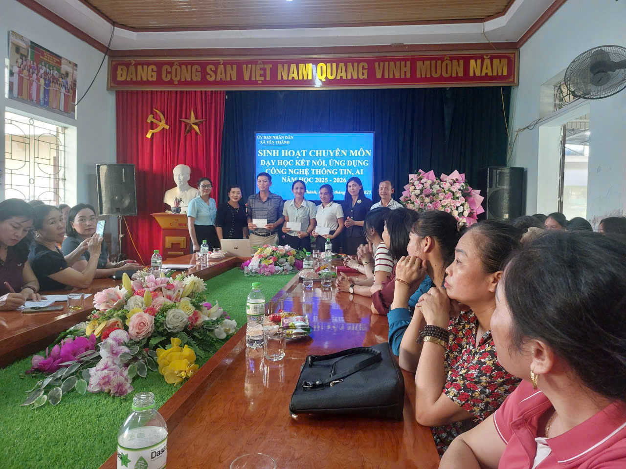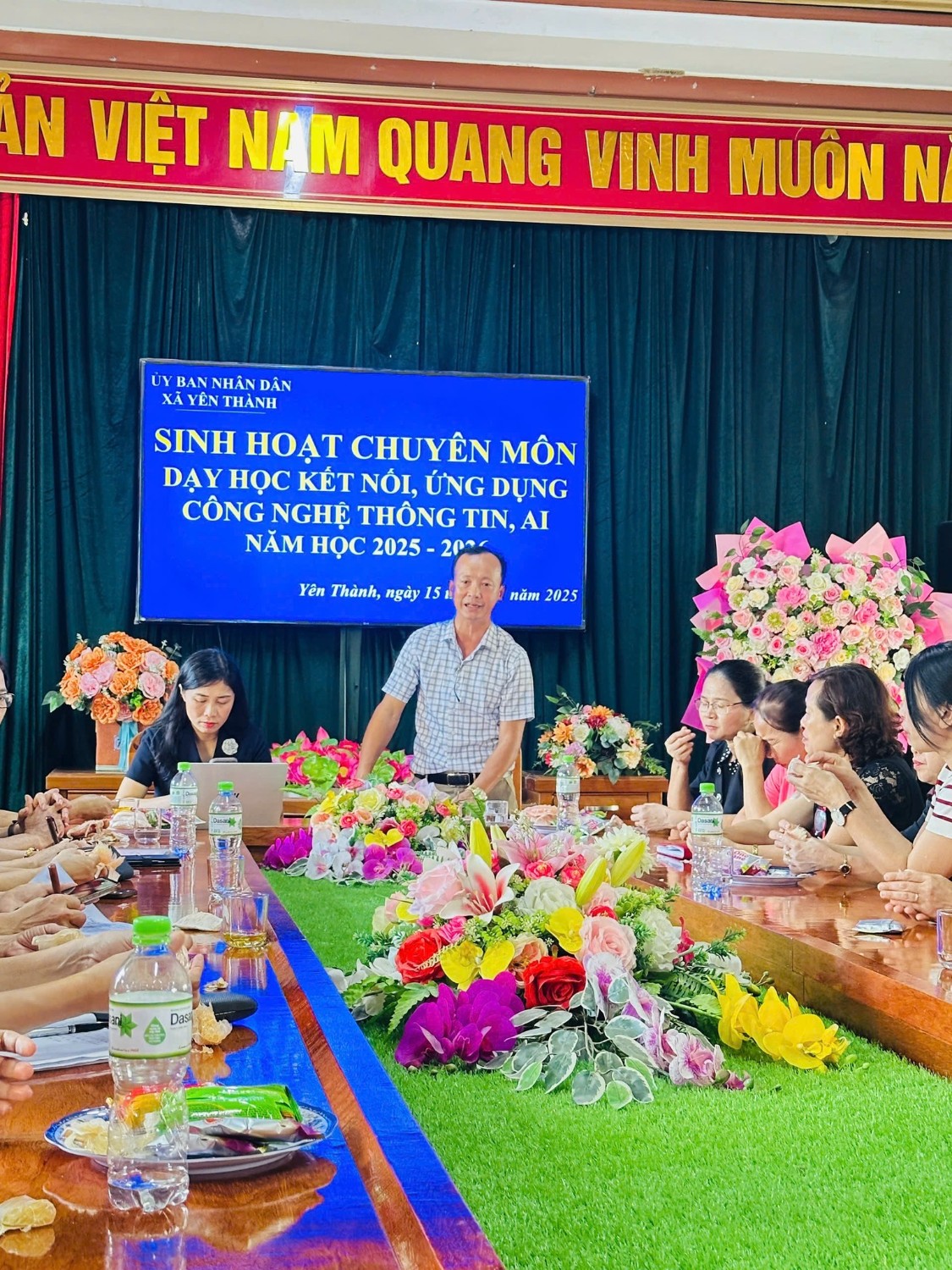 Thực hiện kế hoạch công tác tháng 10/2025, chiều hôm nay ngày 15/10/2025 các trường trên địa bàn xã Yên Thành tổ chức SHCM dạy học kết nối, ứng dụng CNTT, AI với 3 môn: Tin học, tiếng Việt, dạy học kết nối tiếng Anh với trường TH Nghĩa Phúc, TH Nghĩa Đồng ở huyện Tân Kỳ (cũ). Thông qua buổi SHCM nhằm giúp CBQL, GV các trường chia sẻ, tháo gỡ những khó khăn trong dạy hoc. Xin chân thành cảm ơn đc Trần Thị Thanh, trưởng phòng VH-XH xã, các CBQL, GV của các trường đã về tham dự buổi SHCM đạt hiệu quả cao, thành công tốt đẹp. Sau đây là một số hình ảnh buổi SHCM